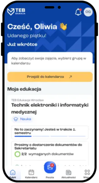 🚀 Już po zapisie na wybrany kierunek możesz korzystać z aplikacji Mój TEB - osobistego centrum dowodzenia każdego słuchacza. 🫡